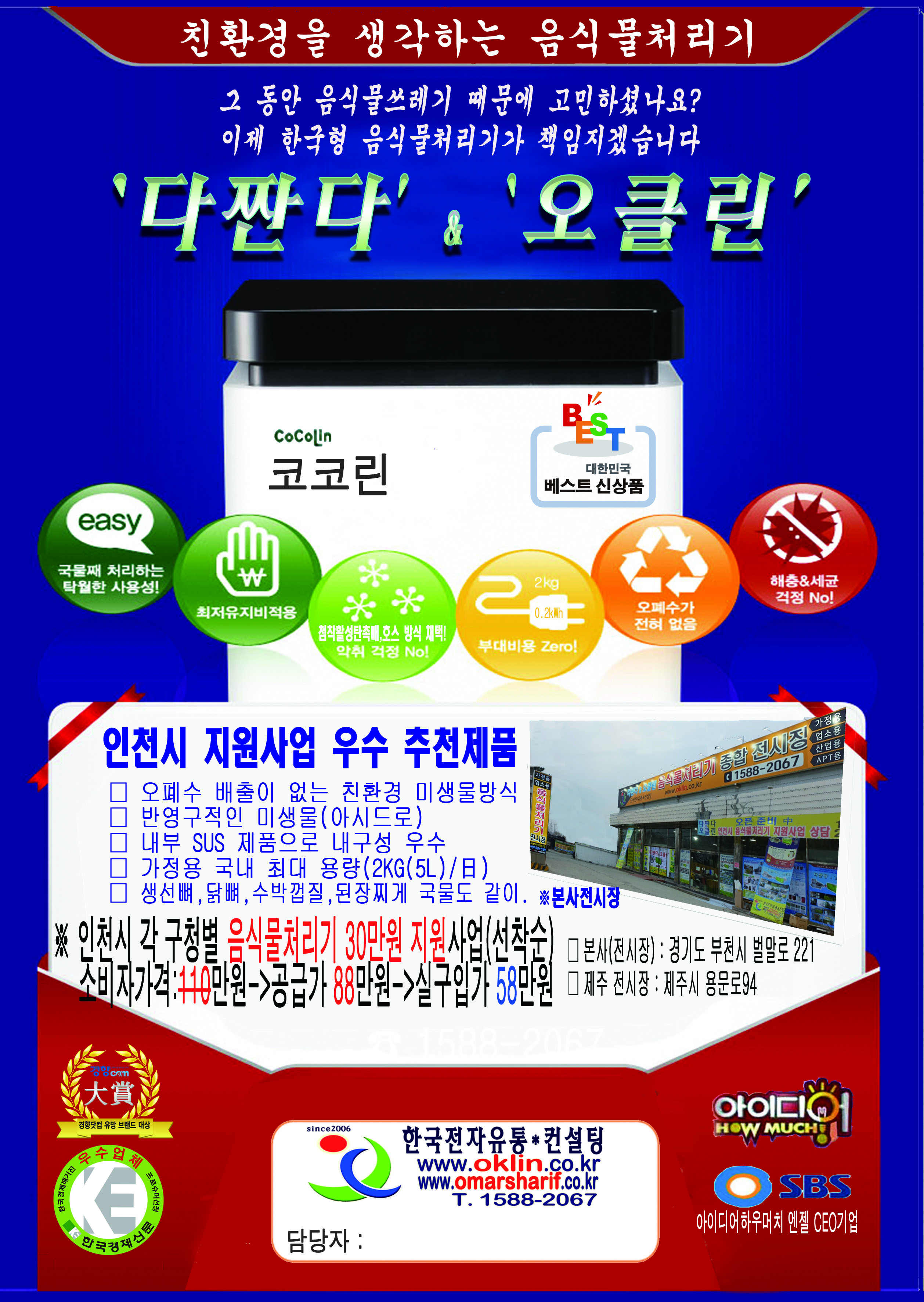▣ 제품 및 설치 문의 : 032-671-2073, 담당자 직통 010-3769-8311 ▣ 제품 보기 : ☞ 바로가기 ▣ 음식물처리기 종합 전시장 : 부천시 벌말로 221