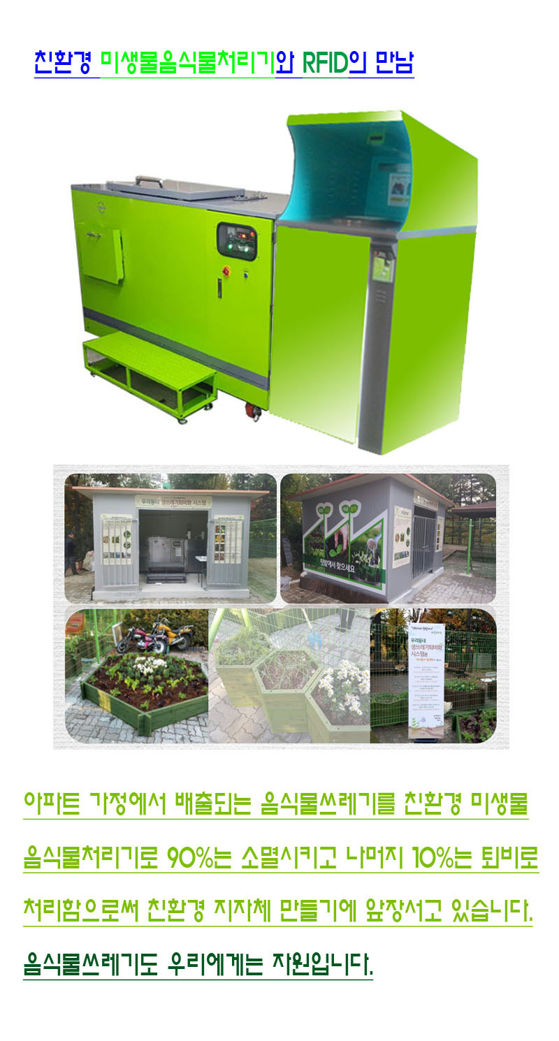 3. 친환경 미생물음식물처리기와 RFID의 만남.음식물쓰레기도 우리에게는 자원입니다!![]() 건강한 지구, 깨끗한 생활환경을 조성하기 위해서 |